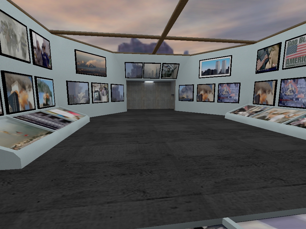 Hier hängen verschiedene Bilder und Eindrücke des 11. Septembers 2001. Im Hintergrund spielt die Musik von Enya (Only Time).